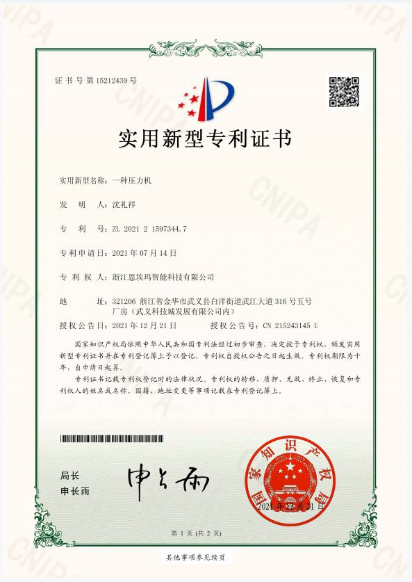 2019年 獲得含“齒輪壓裝機(jī)”鎖螺絲機(jī)”在內(nèi)的多項(xiàng)項(xiàng)國家發(fā)明專利